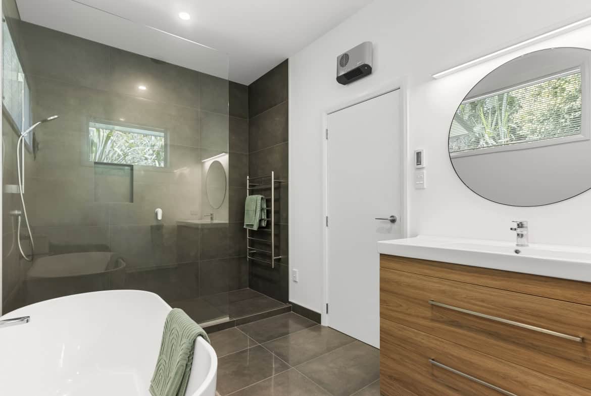 Among the three bedrooms, the master suite is oversized, featuring a grand window that amplifies the view, outdoor access, a walk-in wardrobe, and a well-appointed ensuite with a fully tiled shower, underfloor heating, and a freestanding bath. Two additional bedrooms share a second bathroom, while an open landing offers flexibility for families or home-based professionals.