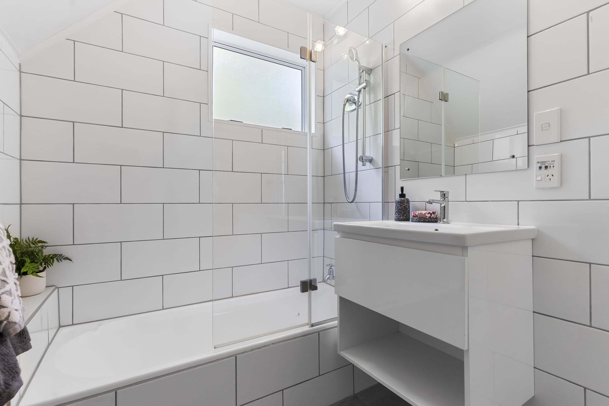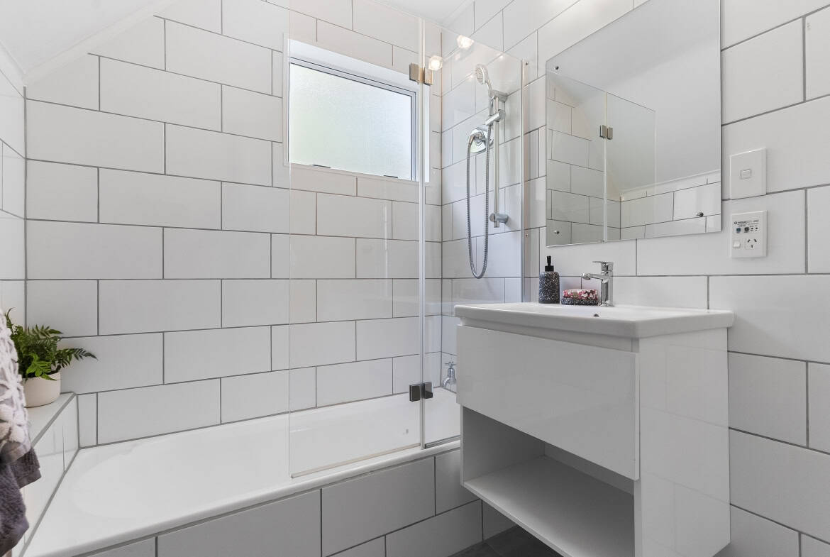 - Family bathroom with shower over bath, offering practicality for everyone.