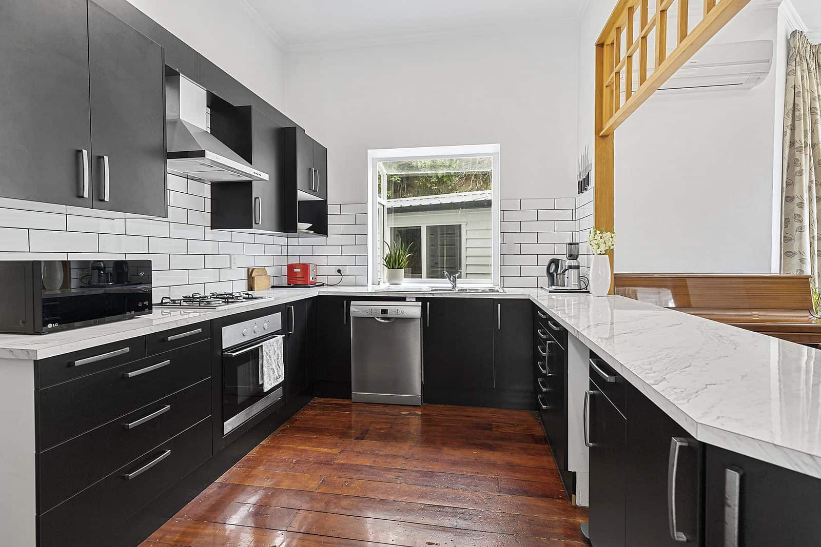 - Stylish, modernized kitchen and open plan dining. The bustling heart of this home family, living and entertaining are easy here. For those with handy DNA, the addition of French doors in the pre-defined space would open this area out to the wrap around balcony, making the most of the late sun and outlook