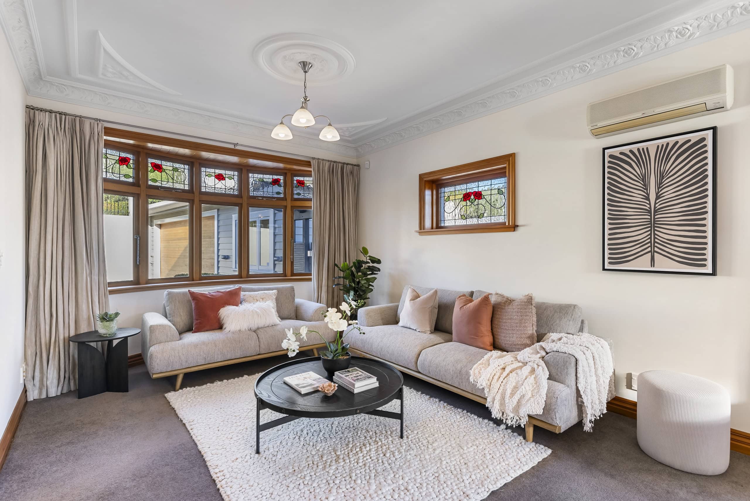 Perfectly positioned in one of Ngaio’s most walkable locations, this meticulously renovated 1930s home is the epitome of character, comfort, and convenience. From the leadlight windows to the moulded ceilings, every detail has been lovingly preserved and enhanced—resulting in a property that’s as functional as it is beautiful. Step inside and discover: