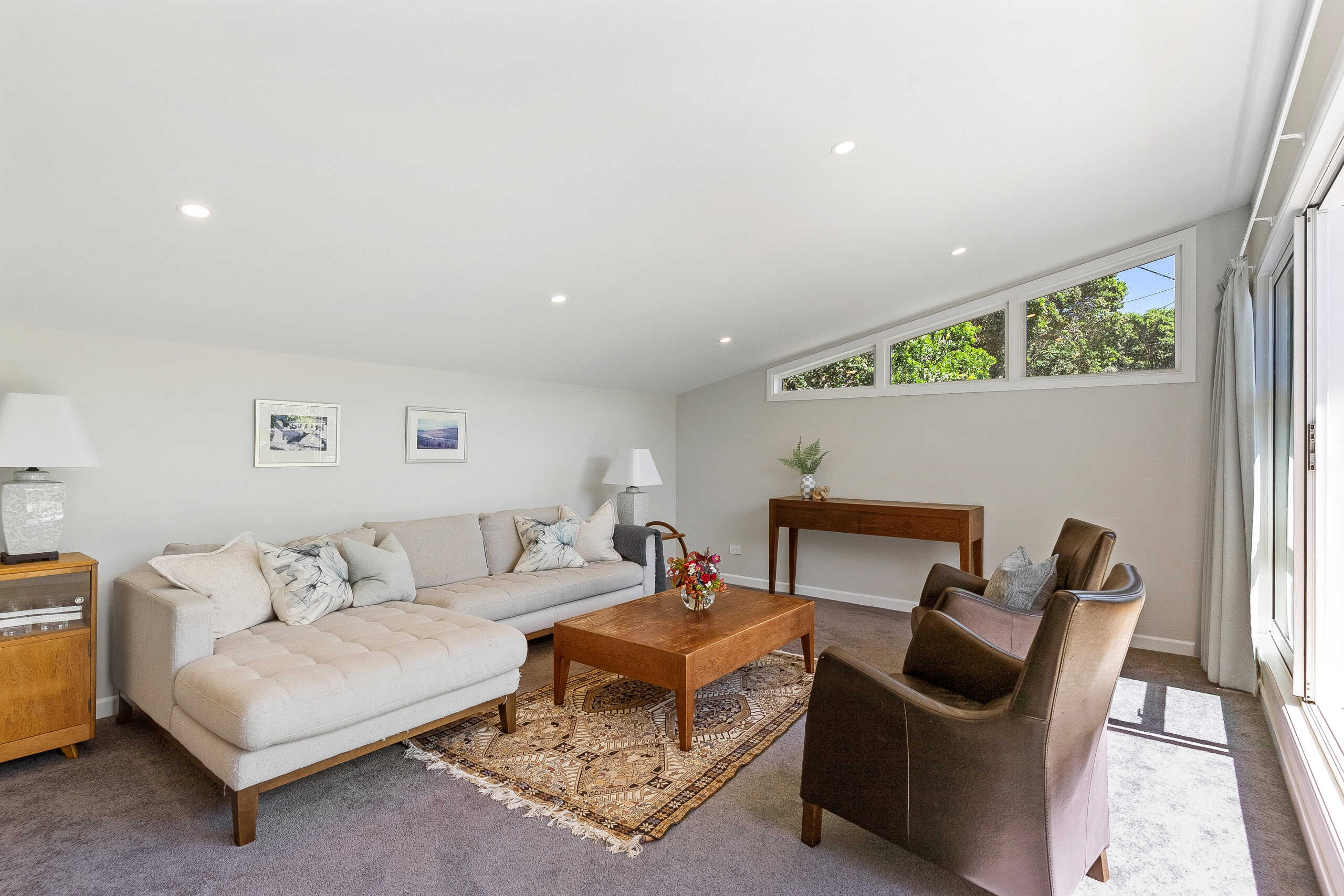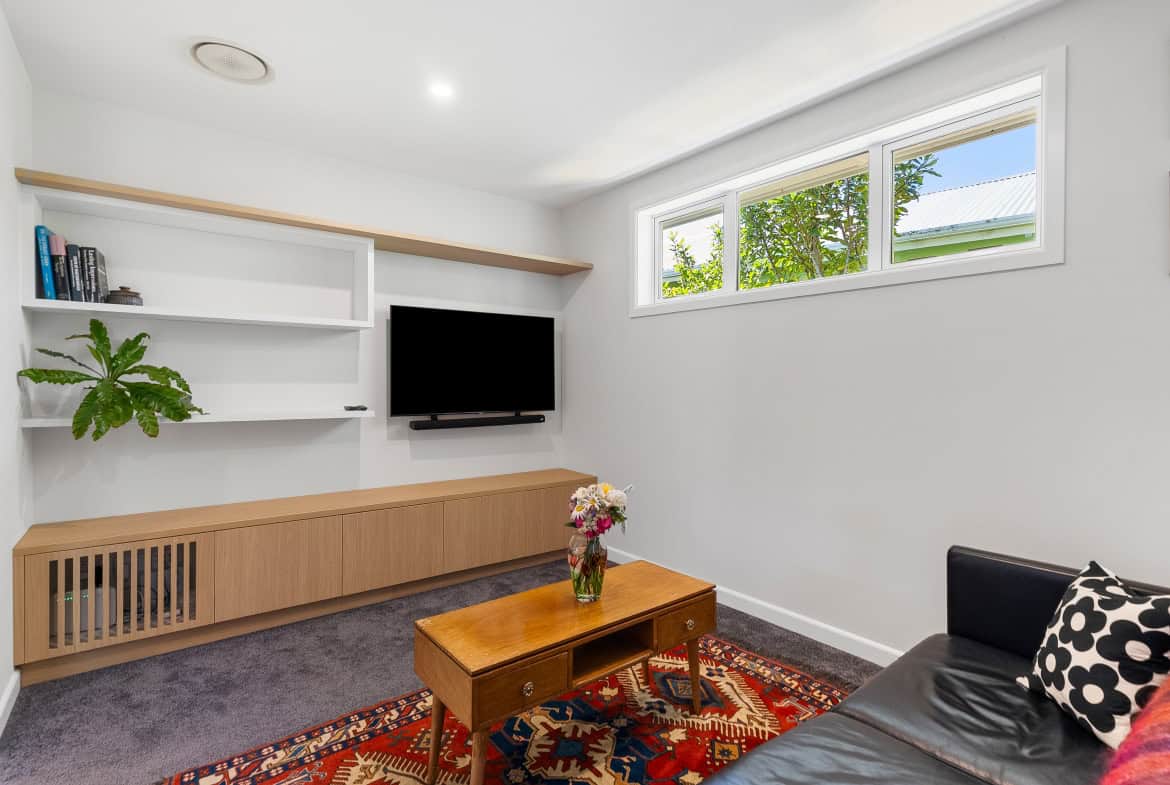 Originally a solid 1950s dwelling, the home has undergone significant architectural upgrades, resulting in a warm, light-filled interior anchored by a stunning central kitchen and dining space. This area forms the true heart of the home, with the main lounge flowing out to a sun-drenched deck for easy indoor-outdoor living. A separate media room sits on the opposite side, offering a quiet retreat for movie nights, reading or working from home.