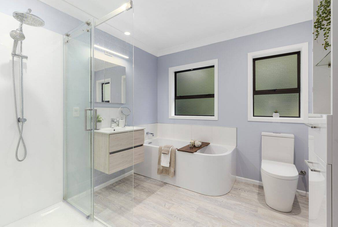 • Modern family bathroom with shower and stand alone bath