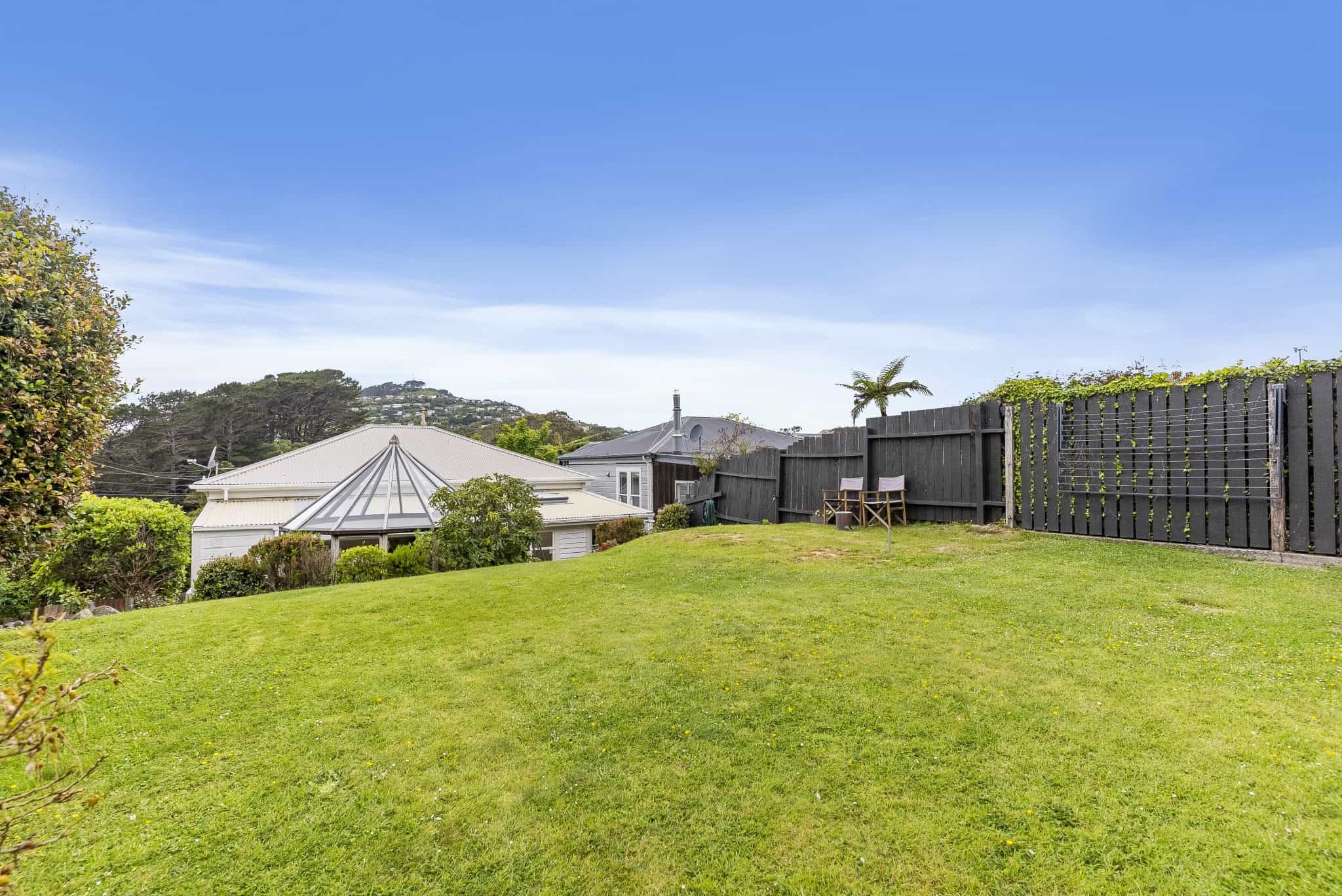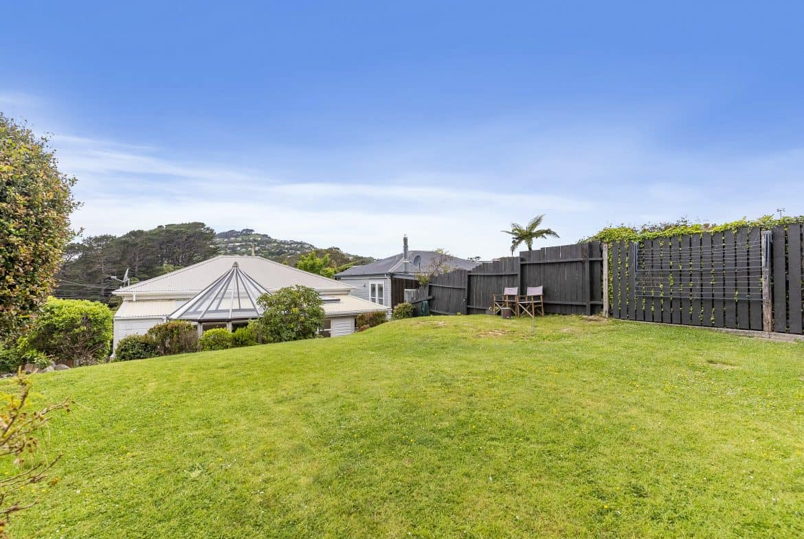 - The section incorporates areas of flat lawn, decking and established fruit trees including apples, pear, feijoas and lemons